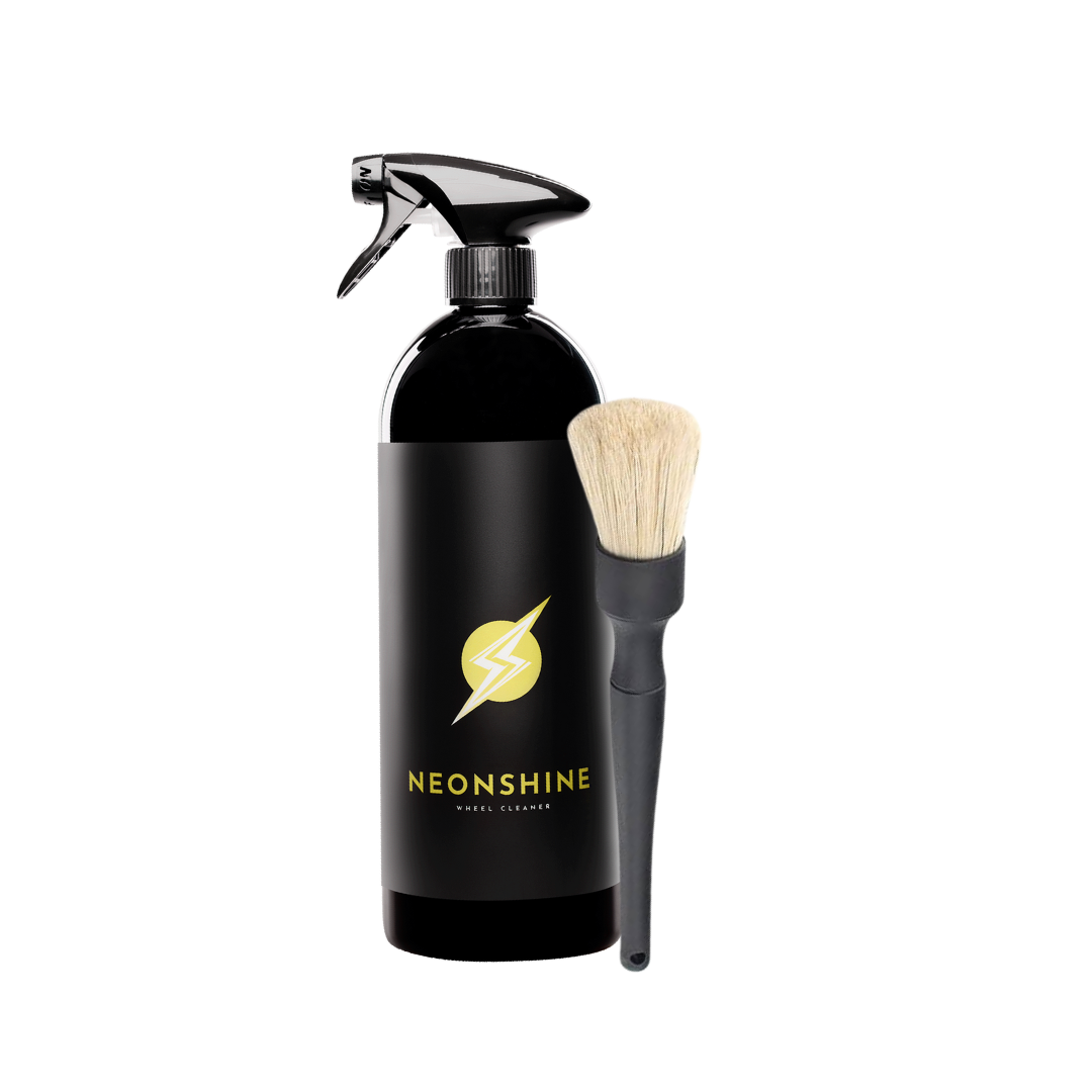 NEONSHINE este un spray puternic, fără acid, care îndepărtează în siguranță și eficient praful de frână, rugina și resturile de cauciuc de pe toate tipurile de jante. Formula sa de gel de ultimă generație face vizibil progresul curățării cu o schimbare strălucitoare de la roșu la violet în timpul curățării. NEONSHINE are pH neutru, ceea ce îl face perfect pentru a fi utilizat pe toate tipurile de jante. Agitați sticla și pulverizați-o pe Jantele reci, lăsați soluția timp de 3-5 minute înainte de a clăti cu un jet puternic de apă. Pachetul vine cu peria noastră specială Flash Detailing Brush care vă ajută să creșteți eficacitatea spray-ului pe suprafața jantelor.